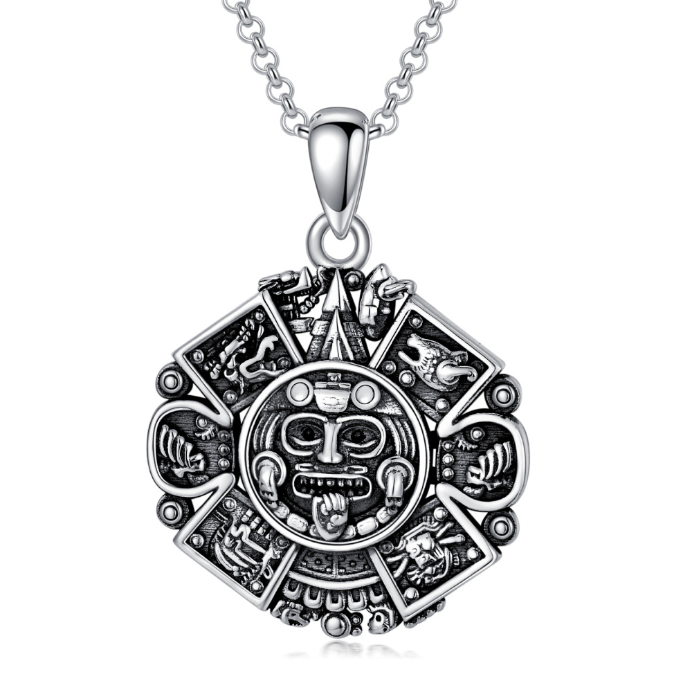 Discover our Sterling silver pendant necklace featuring a detailed Aztec Calendar design, perfect for any gender and a timeless addition to your jewelry collection with its retro silver finish and no stone embellishment.