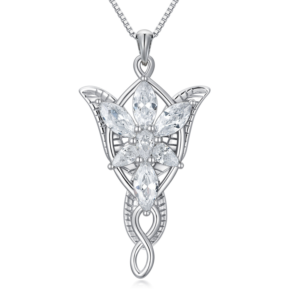 Discover our elegant Sterling Silver Pendant Necklace, designed for women and featuring a stunning Cubic Zirconia Lord Ring, all exquisitely White Gold Plated to ensure both timeless beauty and durability.