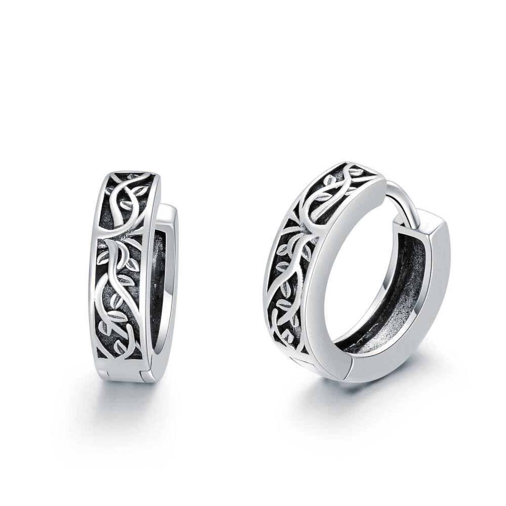Made from premium sterling silver, our hoop earrings feature a captivating Tree of Life motif, symbolizing growth and strength. The retro silver finish offers a vintage charm, perfect for women seeking a meaningful yet stylish addition to their collection. The absence of stones highlights the detailed craftsmanship and ensures versatile wear for any occasion.