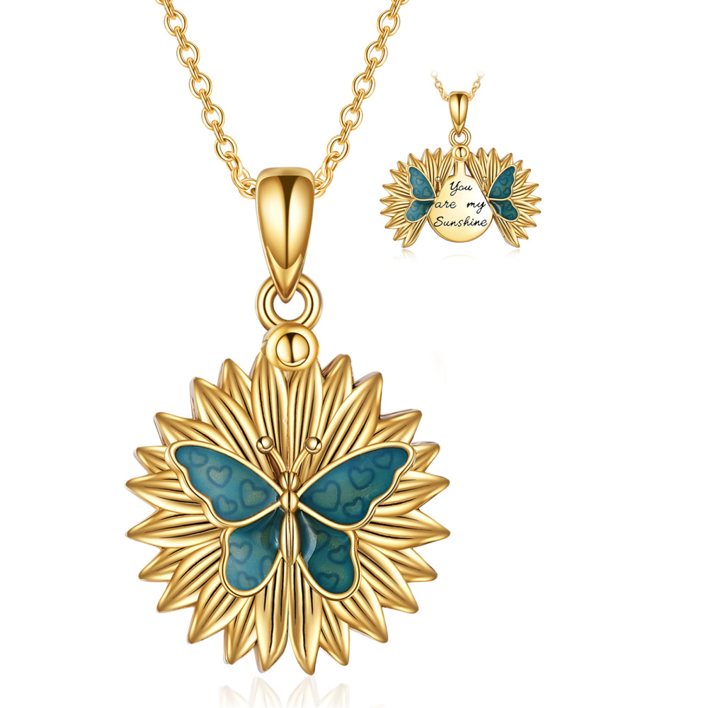 This exquisite butterfly and sunflower pendant necklace is designed for women who cherish unique and meaningful jewelry. Made from high-quality sterling silver and coated in radiant yellow gold plating, it offers both durability and elegance. The intricate details of the butterfly and sunflower symbolize transformation and joy, while the heartfelt "You Are My Sunshine" engraving adds a touch of sentiment, making it an ideal accessory for any occasion.