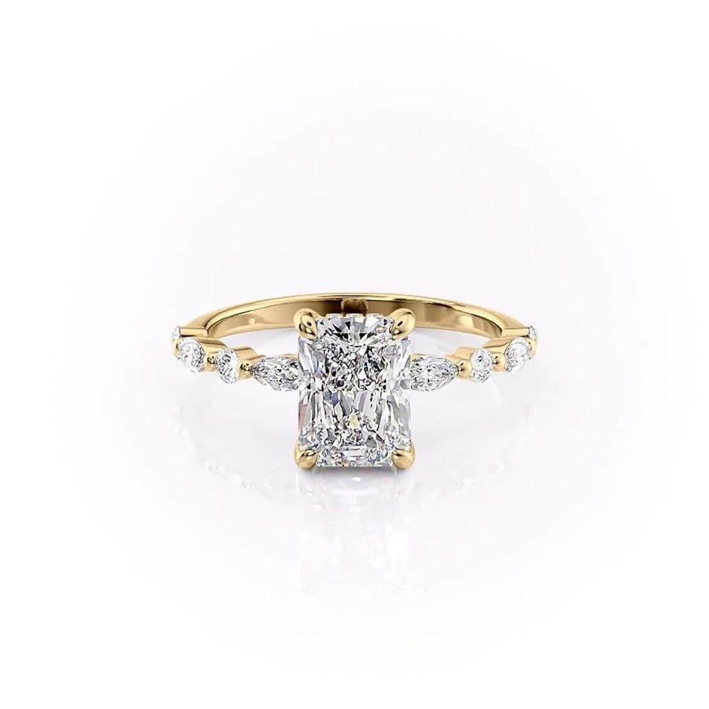 Crafted from high-quality Sterling Silver, this breathtaking ring features a dazzling Moissanite centerpiece that rivals the brilliance of a diamond. The Yellow Gold plating adds a luxurious touch, making it a perfect piece for any occasion or as a timeless gift for the special woman in your life.